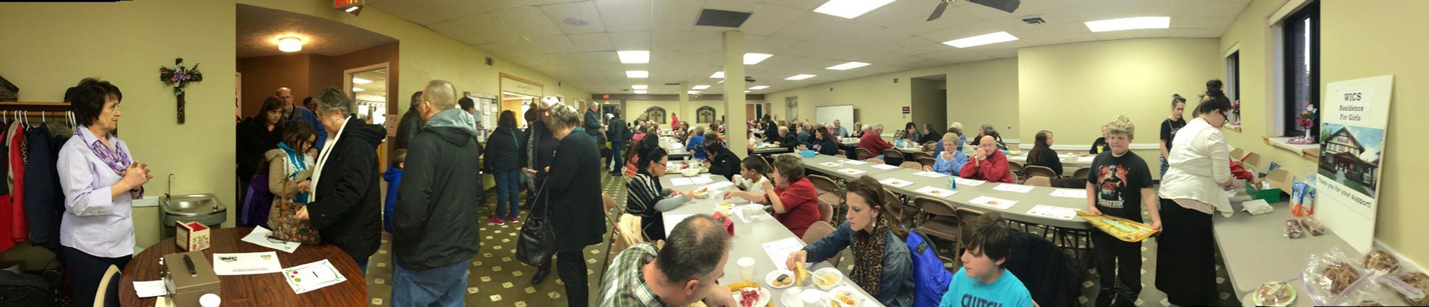 This is a landscape of a packed church basement feeding on our delicious soup.
